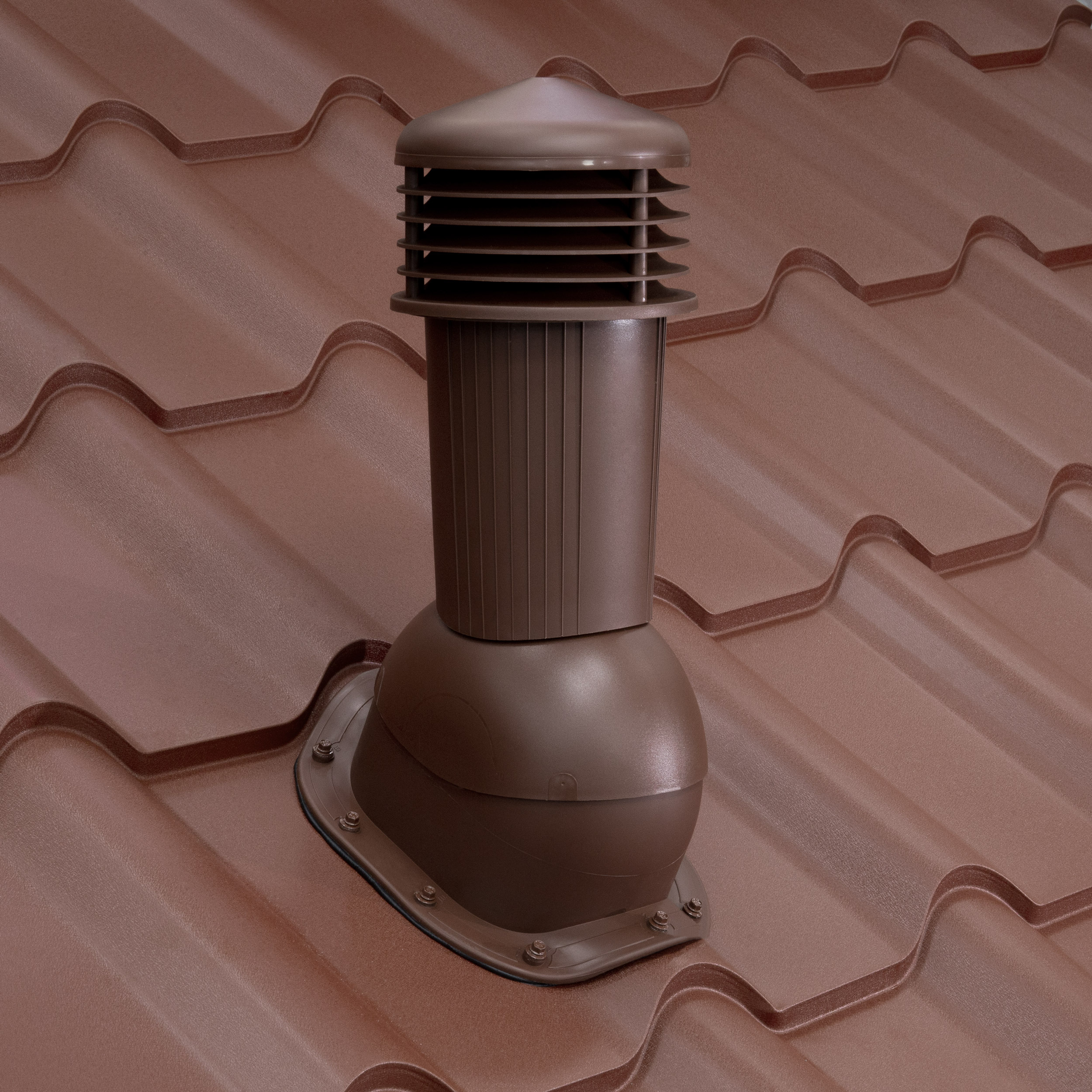 Sistem complet utilizat pentru aerisirea și ventilarea acoperișului cu trecere profilată. Pachetul contine coş de ventilare, adaptor profilat prevăzut cu bandă butilică de etanşare si şuruburi în culoarea sistemului de ventilare.