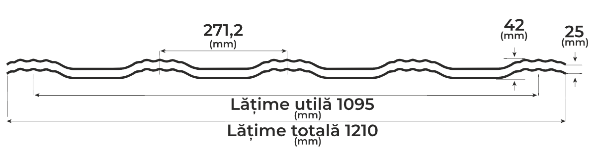 | Lățime utilă de acoperire | 1095 mm |